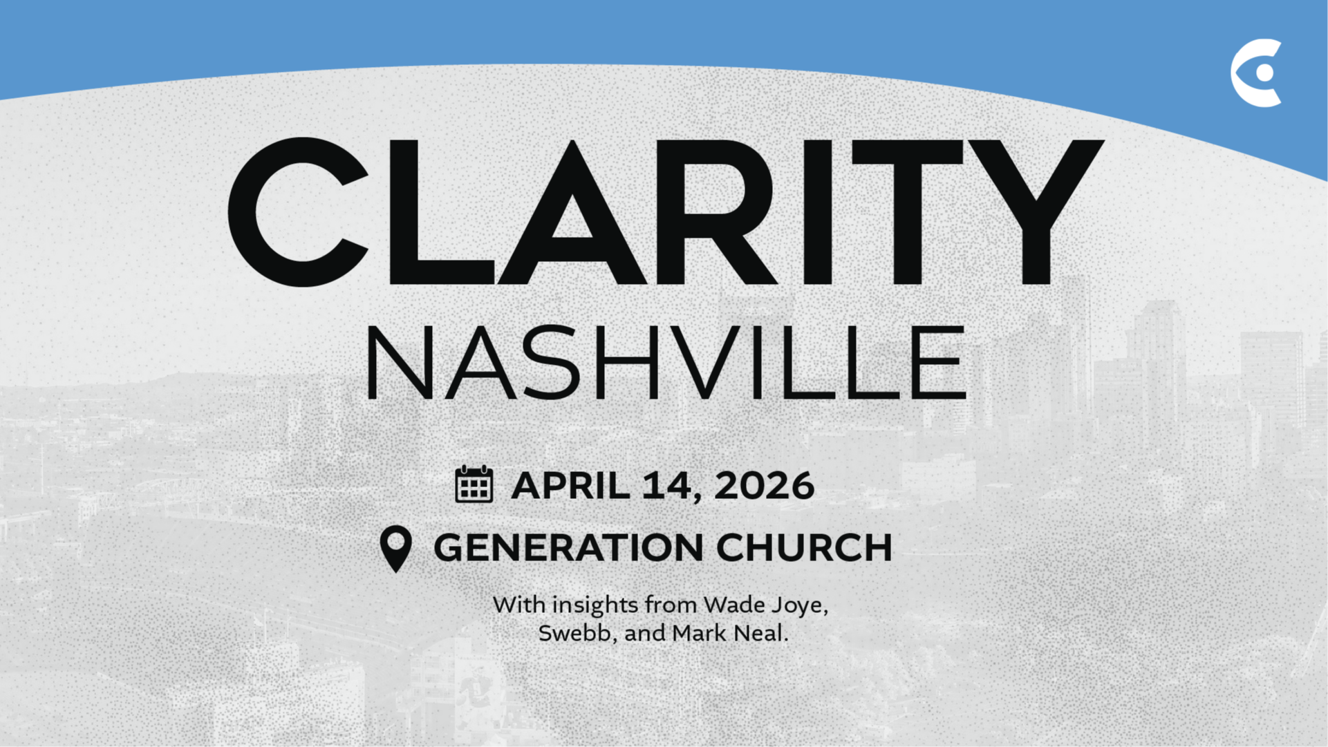 We would love to see you at our next Clarity Event on Tuesday, April 14th from 9:00 AM to 4:00 PM in Nashville, Tennessee